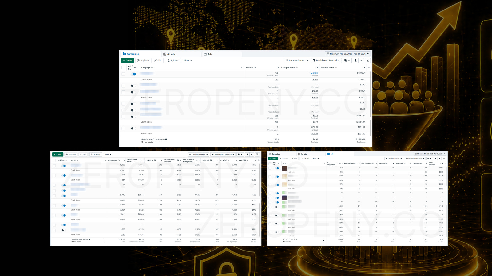 Here’s one example: a Korean gambling campaign that pulled 603 leads at $4.98 CPL on $2,999.98 in spend.